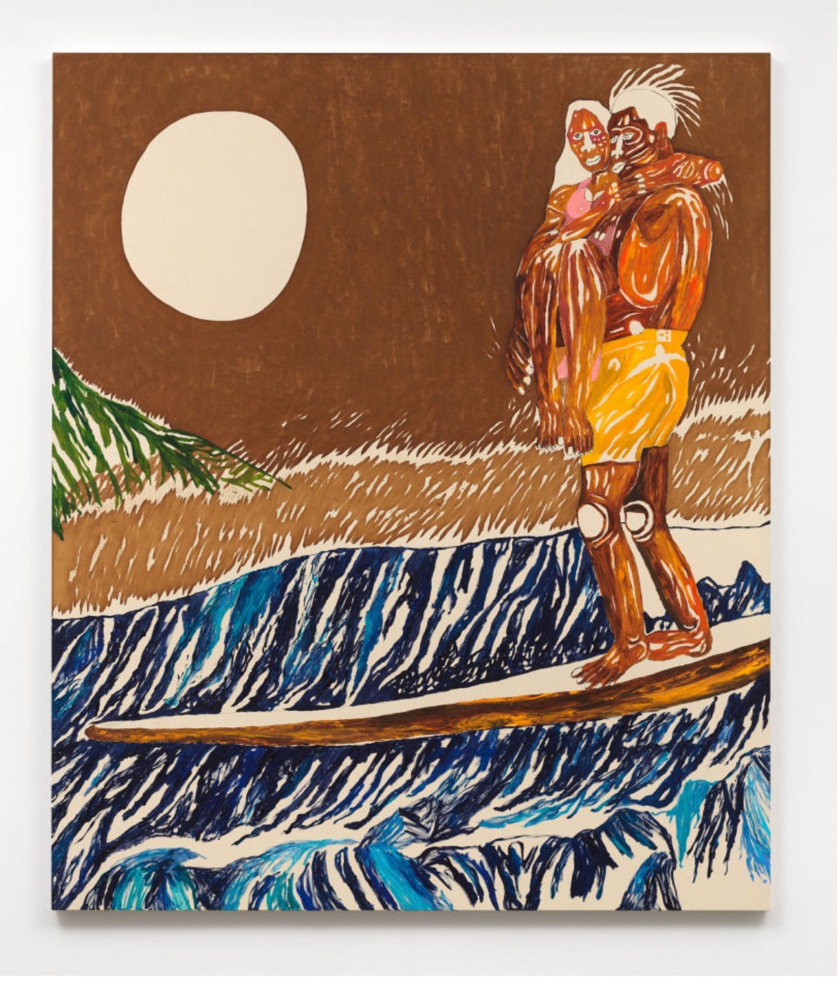 Chase Hall, Right, Under The Moon, 2022, acrylic and coffee on cotton canvas. Image still not courtesy of the gallery.